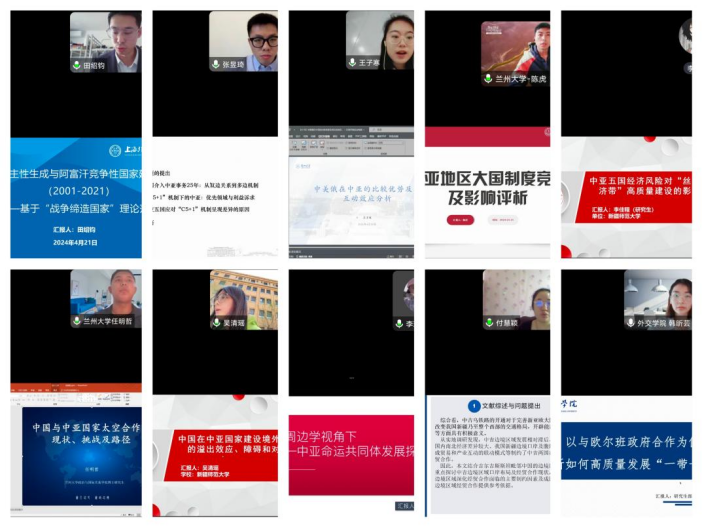 在“欧亚地区竞合关系”分论坛,田绍钧、张昱琦、王子寒、陈虎、李佳程、任明哲、吴清瑶、李瑞琳、付慧颖、韩昕芸等同学以“自主性生成与阿富汗竞争性国家建设(2001-2021)——基于‘战争缔造国家’理论范式”、“中亚视角下的美国中亚战略——以‘C5+1’机制为例”、“中美俄在中亚的比较优势及其互动效应分析”、“中亚地区大国制度竞争及影响评析”、“中亚五国经济风险对“丝绸之路经济带”高质量建设的影响研究”、“中国与中亚国家太空合作:现状、挑战及路径”、“中国在中亚国家建设境外经贸园区的溢出效应、障碍和对策研究”、“中国周边学视角下中国—中亚命运共同体发展探析”、“‘一带一路’视域下中吉边境区域经贸合作制约因素及对策研究”、“以与欧尔班政府合作为例探析如何高质量发展‘一带一路’”为题宣读了论文。西安外国语大学国际关系学院耶斯尔研究员、陕西师范大学中亚研究所陈东杰副研究员、h漫