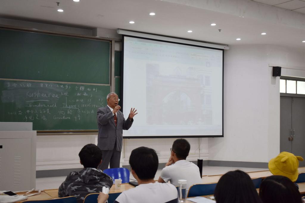 讲座中,董友忱教授从泰戈尔家族姓氏来历、泰戈尔访问中国的事迹等方面讲述泰戈尔生平。之后,他详细介绍了泰戈尔的思想及其作品,为同学们还原了一个真实的泰戈尔。讲座最后,学生纷纷向教授提出自己的疑惑,董友忱教授均进行了耐心地解答。
