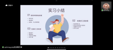 口腔医学院专职辅导员邢千里与同学们分享实习经验。他从三个方面简单介绍他个人实习和就业的导向。首先是实习岗位的选择。邢千里从他的本科阶段和硕研阶段入手谈及他对职业规划与自我分析下所选择的实习单位的方法,进而引申出选择实习单位的三大维度:岗位与自我专业、爱好匹配度,个人时间匹配度以及意向单位整体情况;接下来邢千里就如何找到实习机会提供自己的思路。他不仅介绍了校内资源,还为大家讲解了社会资源以及拓展资源等详细内容,丰富了就业实习途径;随后他从曾经的实习经历中详细讲述了他的实习心得,同时表示这些经历对他后来的发展提供了很大帮助。最后邢千里鼓励大家对实习工作全力以赴,把握好每一个实习机会,并祝福政国院的学子们能在大学阶段里找到明确的职业规划。