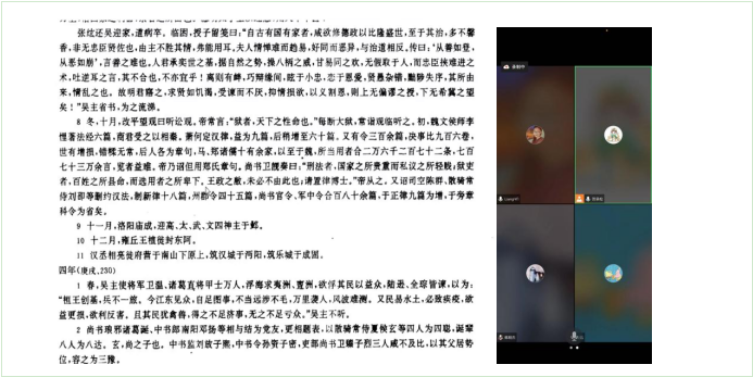 第十五期“青简”读书会准时开始。本次读书会采取线上的方式进行,由黎晓锋同学主持,来自政国院、文学院等不同学院的二十名同学参加了本次读书会。本次读书会承接上期的阅读内容,聚焦《资治通鉴·魏纪》太和二年(228年)至太和四年(230年)之间的内容。