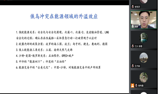 邀请,上海对外经贸大学讲师连波为我校师生做了题为《俄乌冲突背景下的国际能源治理》线上学术讲座。此次讲座由h漫