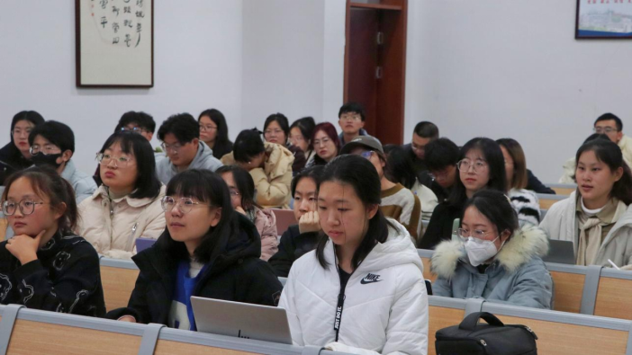 李益斌老师主持,学院两百余名学生参加。