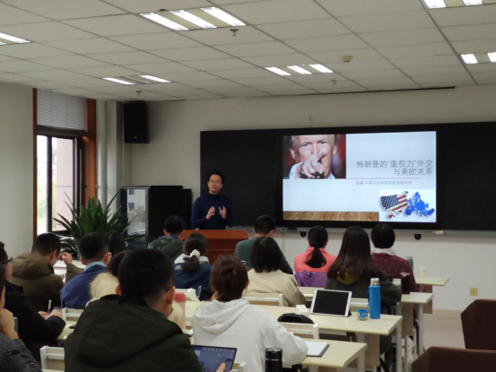 作了题为“特朗普的蛮权力外交与美欧关系”线下学术讲座,这也是鹿鸣讲堂“正德”系列第二十三场学术讲座。此次讲座由曾向红教授主持,校内80余名师生聆听了本次讲座。