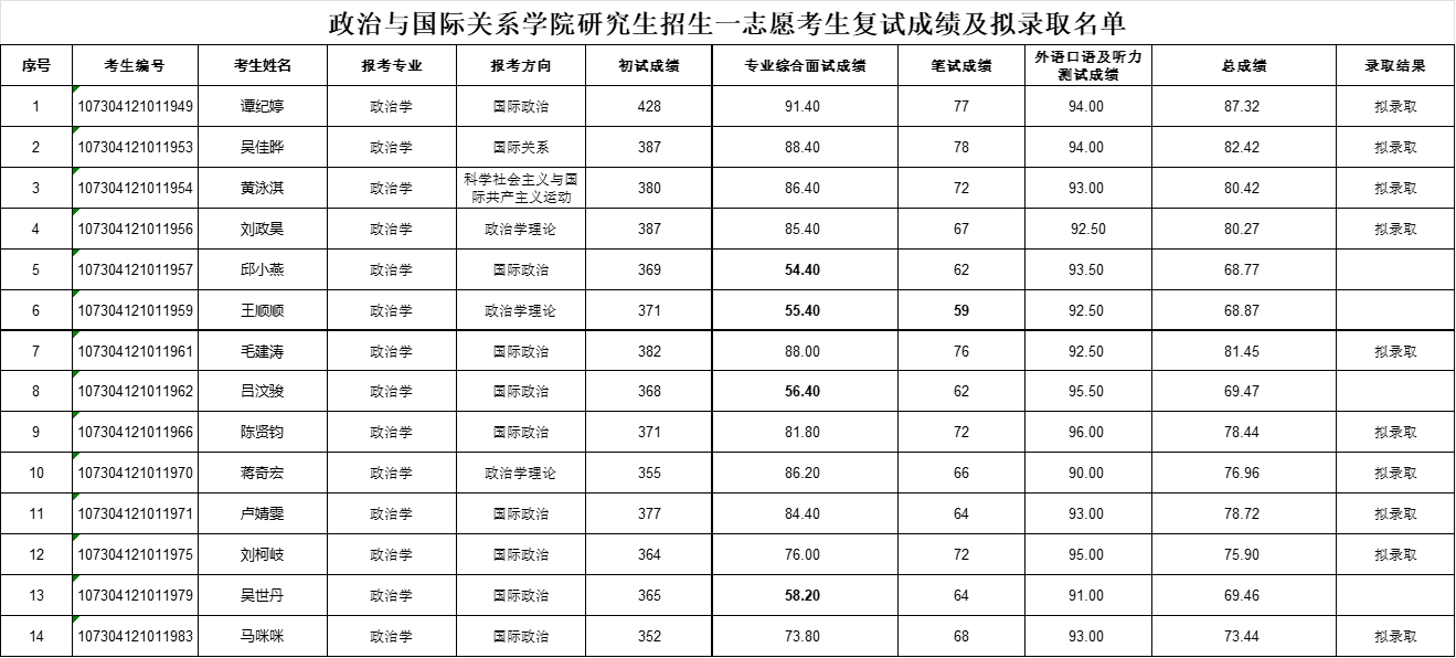 【硕士招生】h漫 2024年研究生招生一志愿考生复试成绩及拟录取名单