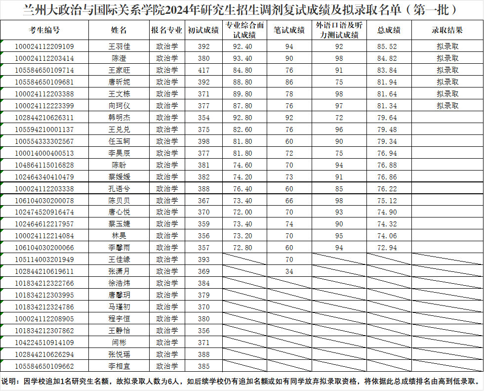 【硕士招生】兰州大h漫 2024年研究生招生调剂复试成绩及拟录取名单(第一批)
