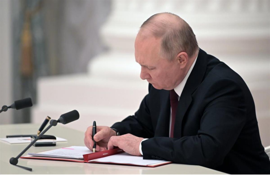 据媒体报道,就在普京发表全国视频讲话当天,他还签署了俄罗斯与顿涅茨克人民共和国和卢甘斯克人民共和国的友好合作互助条约。