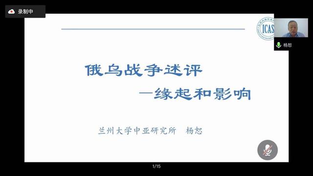 中亚研究所所长杨恕教授应资源环境学院党委邀请,线上为学院师生作题为《俄乌战争述评——缘起和影响》的时政报告,从“俄罗斯与乌克兰关系史”“苏联解体后俄罗斯与乌克兰及北约的关系”“战争目的、战况和结果”“战争的影响”四方面阐述历史及当下局势。