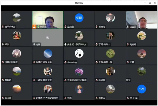 汪金国教授在会上就“加快构建中国特色的二战史研究学术体系,构建二战史研究的中国话语体系”“历史研究与现实研究结合”等议题发言并致闭幕词。来自华中师范大学、国际关系学院、武汉大学、西北师范大学、首都师范大学、北京师范大学、内蒙古大学、湖南师范大学、赣南师范大学、四川大学、广西师范大学等研究机构的十余位专家学者齐聚云端,围绕党的二十大与二战史研究主题展开了热烈而富有成效的探讨。
