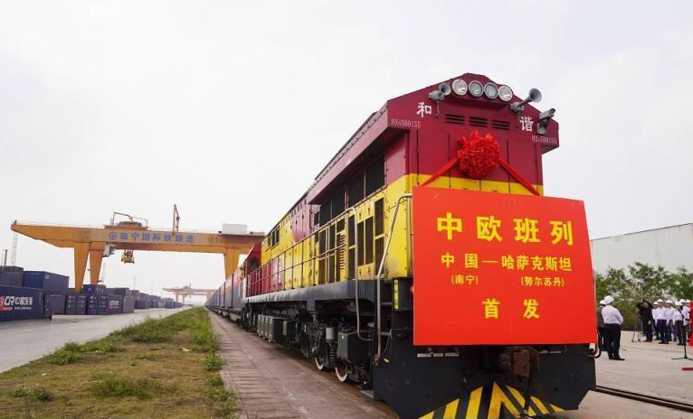 2021年3月13日,从广西南宁开往哈萨克斯坦努尔苏丹的首发中欧班列,开辟了南宁-西安-努尔苏丹的新线路