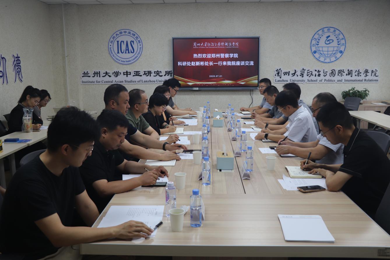 在区域国别研究、国家安全战略等领域的学术积累,与郑州警察学院的实践优势形成了鲜明互补,期待双方更多的合作举措。普光耀从学校科研平台建设、智库发展支持的经验做法等方面进行了交流。朱永彪在座谈会上学科发展、科学研究、人才培养、平台建设等方面简要介绍了学院的基本情况。