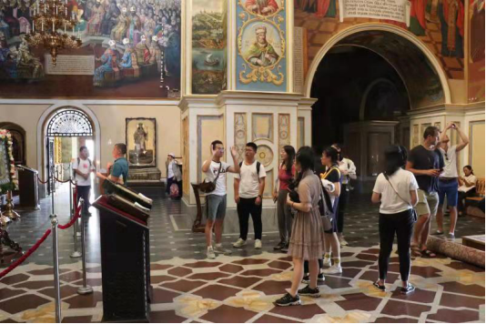 经过中午短暂的休整,下午第二站交流团成员前往基辅洞窟修道院,基辅洞窟修道院作为基辅最古老的寺院建筑,保留了基辅罗斯重要的历史资料,诉说了乌克兰辉煌的历史和灿烂的文明。从中也感受到了乌克兰东正教文明的建筑特色,庄严而神圣。