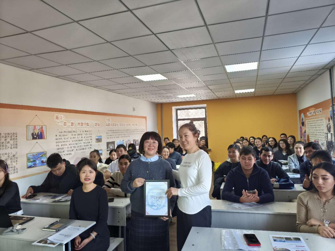 高婉妮为吉尔吉斯斯坦民族国立大学师生做讲座并获颁纪念证书