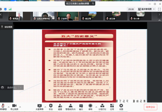 通过腾讯会议组织线上中心组学习活动,专题学习中国共产党第十九届中央委员会第六次全体会议精神,副校长沙勇忠参与了此次线上学习活动。