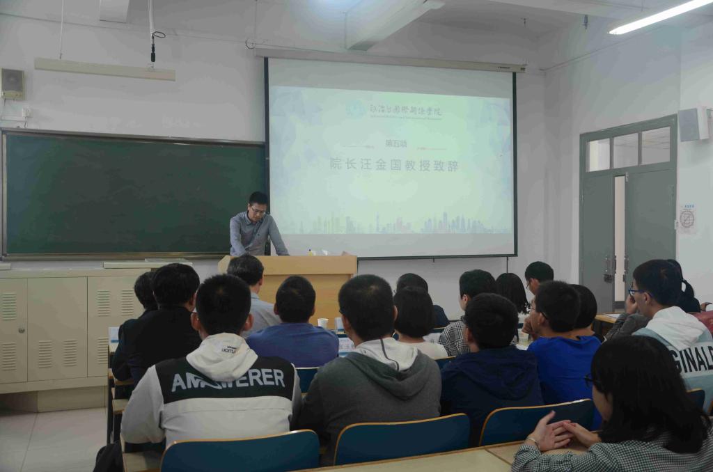 院长汪金国教授代表学院全体师生向新同学的到来表示欢迎和祝贺,从学科建设、科学研究、国际交流等方面介绍了学院的基本情况。学院建立1年,无论是学科发展和师资队伍建设,还是学院文化建设和国际交流,各项事业都呈现出积极向上的态势。做为学院的第二批新生,2019级新生是不断注入学院的新生力量和学院建设发展的亲身参与者和经历者。汪院长向全体新生提出了三点希望:一是希望全体新同学,自入校起,以健康的态度和饱满的热情投入到学习和各类文体活动当中,锻造积极、乐观、青春、阳光、宽容、感恩、成熟,富有家国情怀和充满正能量的青年!二是希望各位新同学,尽快适应新环境,适应新课堂,适应新同学,互帮互学,互助友爱,只争朝夕,饱览群书,穷尽义理,终成一家之言。三是将政国院奋发向上、积极进取、自强不息、厚德载物的良好的团结精神和优秀基因,在政国院一代一代人的接力棒中不断传承下去。