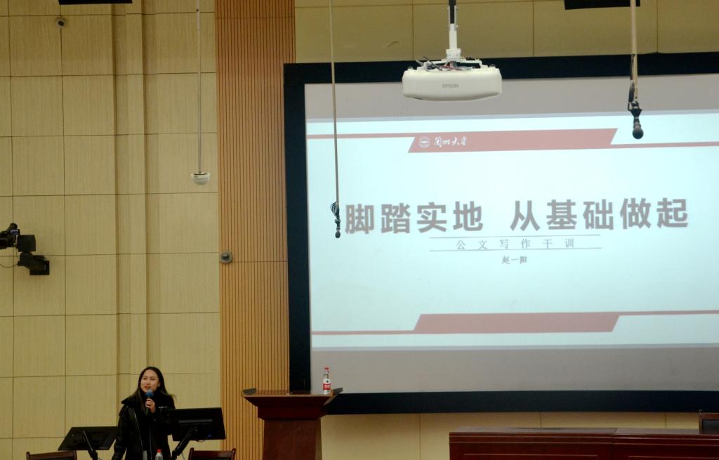 本次团干培训以“萃英山前,四才云集;天山堂里,八院荟萃”为主题,以加强团学工作人员思想建设、全方位提升工作能力、强化各院沟通联络、营造愉悦向上的校园工作氛围、形成良好风气为目的,邀请各院能力卓越、经验丰富的工作前辈和优秀的团委学生会骨干出席,以讲座的形式开展干训。首先,来自管理学院的18级行政管理班的高宇航同学发表了以“服务同学,追求卓越”为题的演讲,从“找准定位,踏实肯干”“协调时间,调整自己”“忙中有乐,忙有所获”三个方面分享他从两年的学生工作中总结的经验,并叮嘱团干们要保持一颗热忱之心继续前行。其次,外国语学院18级俄语专业的方祉璎同学以“从心出发,砥砺前行”为主题进行发言,细致的从基础团务、办公室软件操作、活动策划三个方面进行深入浅出的讲解,使同学们对共青团组织有更加深入的了解和学习,对办公室软件的实际操作小技巧和活动策划流程及注意事项有清楚深刻的认识,对团学工作人员今后的工作有深刻的指导作用。最后,外国语学院19级的赵一阳同学为大家进行了以“脚踏实地,从基础做起”为主题的报告,报告中详细介绍了公文写作的格式、要求等相关知识,规范同学们对公文写作的认识,使本次干训活动圆满结束。