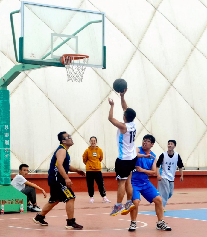 赛前,双方队员各自讨论比赛战术,随着裁判哨声响起,比赛正式开始。队员们把篮球高高抛起,激烈的争夺瞬间点燃气氛,双方队员迅速进入状态,全力以赴。一方面,同学们积极拼抢,相互配合,不断突破,率先赢得比分。老师们则稳扎稳打,通过默契的配合和娴熟的技术,追平比分。场边的同学热情高涨,为场上的球员们大声呐喊助威。经过三场激烈的比拼,h漫