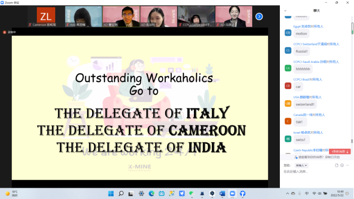 2022年1月,我校应外交学院邀请,参加北京国际模拟联合国大会(Beijing International Model United Nations 2022)。作为中国首屈一指的模拟联合国活动,该活动每年都受到外交部、教育部、共青团中央、中国联合国协会和联合国驻华系统等部门和机构的大力支持。大会为学生提供了一个独特的平台,能够让学生们加深对国际关系的认识和联合国运作模式的了解。本次大会议题涵盖广泛,涉及健康、网络犯罪、安全、环境保护,数字建设等,共设立11个委员会,包括4个英文委员会,4个中文委员会,1个法文委员会、1个西班牙文委员会和1个主h漫。