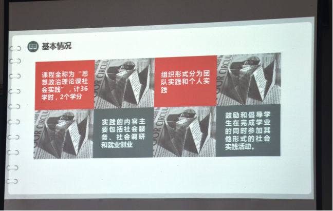 本次会议共分为两个部分。韩雅宁向2021级同学针对今年学校对本科生社会实践活动的最新修订进行简要说明。今年修订的大方向是推进思想政治理论课改革创新、推动社会实践与思政课有机融合以及增强思想政治教育的针对性和实效性,具体内容表现为以教师提供的固定选题开展社会实践、强化实践过程管理、时间累计应不少于21天等。她表示今年大一与大二的社会实践活动的方案存在很多不同之处,2021级同学的社会实践应在大一至大三期间完成,可利用假期时间集中开展团队实践或个人实践。此外,她也提到从2021级开始,社会实践成果提交一般安排在大三学年第一学期进行,不同于以往的完成后即可提交。