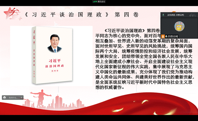 本次活动重点学习《习近平谈治国理政》第四卷,习近平总书记在省部级主要领导干部专题研讨班上的重要讲话精神,习近平总书记给北京师范大学“优师计划”师范生的回信以及中国共产党第二十次全国代表大会精神四个内容。同学们按时加入视频会议,在各班组织下,各个党章党史学习小组对四个重点内容进行了深入的学习和讨论,并在会后组织撰写心得体会,反馈学习情况,让同学们在反思中加深了对党章党史、政治理论的理解,各党章党史学习小组纷纷表示受益匪浅。