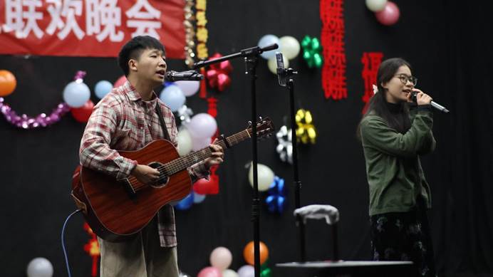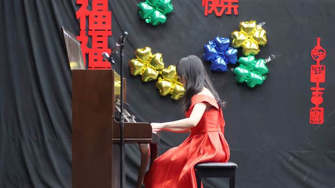心灵的归处、诗意的栖息,翻飞的黑白琴键下,一阵曼妙的乐声自指尖弥漫。“如果痴痴地等某日,终于可等到一生中最爱”,琴音之后,《一生中最爱》凄婉动人的旋律响起,独特的音色与演唱方式,绵长深沉的爱意肆意流淌。爱意之永恒无论在哪方时空都令人动容,《手心的蔷薇》绽放时,永恒便被从抽象中抽离,具象在世人眼前。吉他在男孩的手指下流出感伤的旋律,女孩凄美的歌声随之响起,一曲《至少还有你》感动全场,但忧伤的情绪并未持续太久,一首《喜洋洋》又使此刻时光宛如倒行的旅人,恍惚间只觉自己蹲坐在电视前,看那部永不落幕的童年。