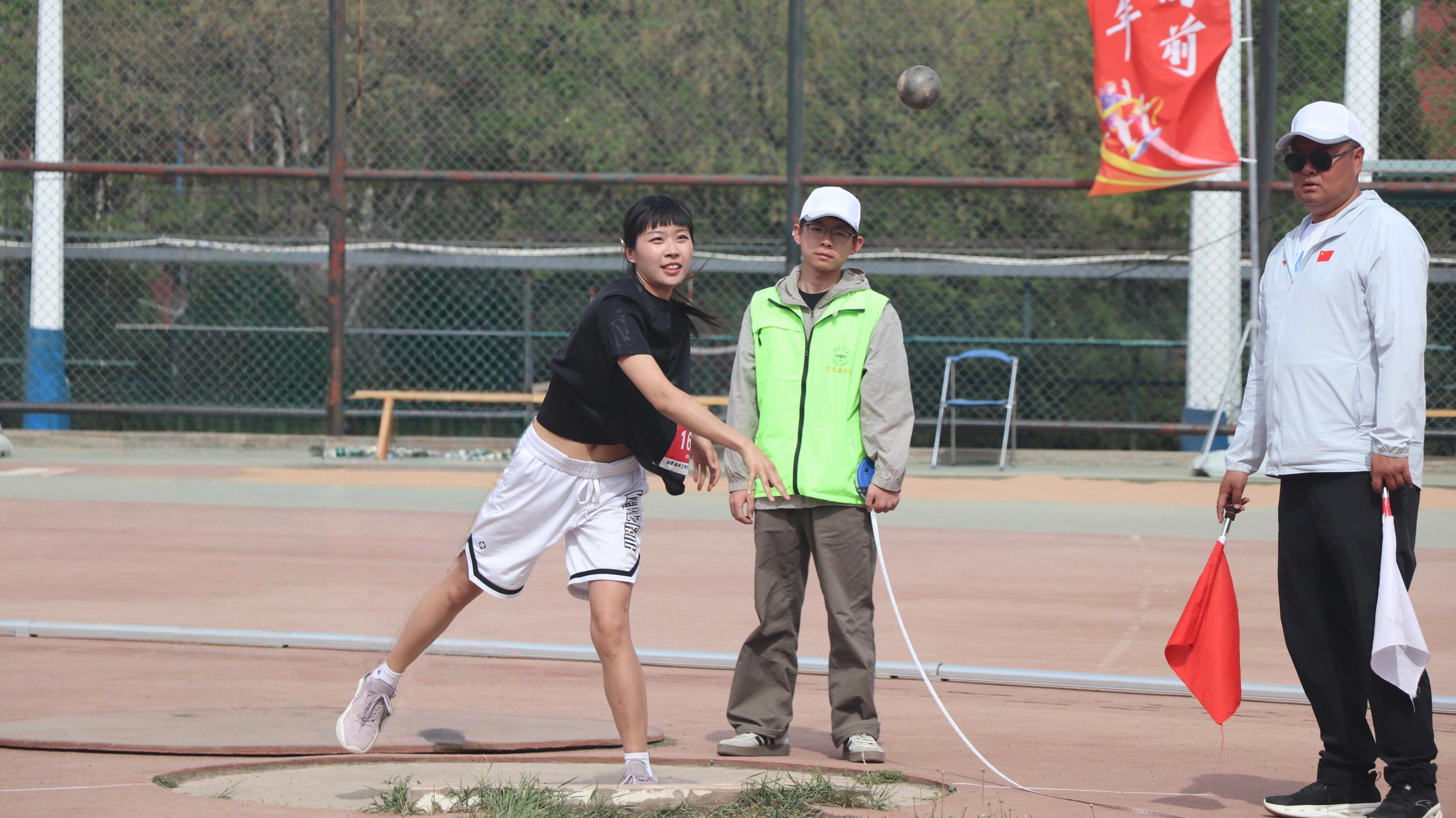 在铅球赛场上,选手们弓背屈膝,积蓄全身力量。刹那间,旋转、爆发,肌肉如弹簧般骤然舒展,沉重的铅球化作划破长空的弧线,带着破空的锐响飞向远处,力量与精准在此刻定格。