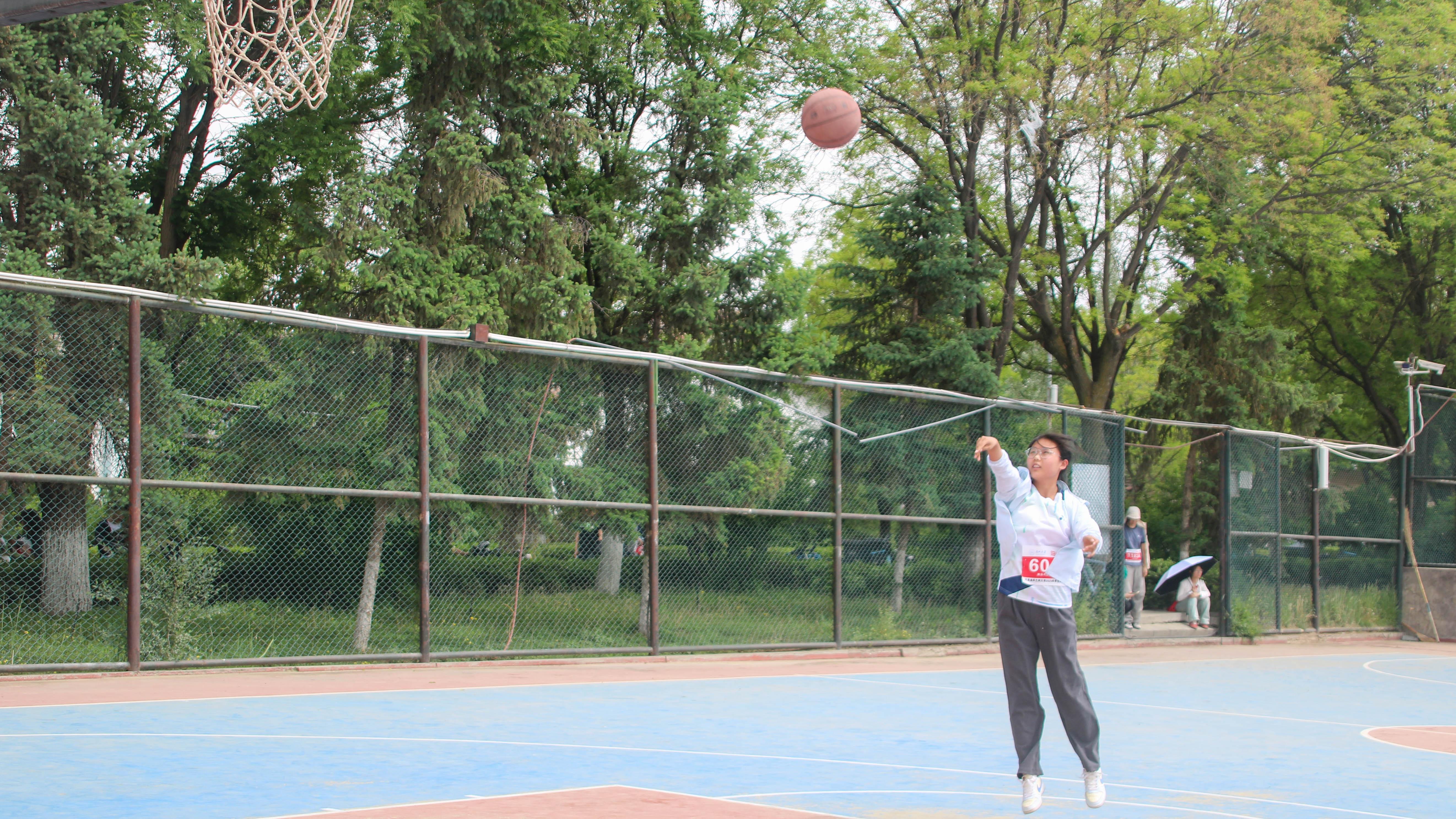篮球在指尖翻转,选手们屈膝凝神,目光锁定篮筐。起跳瞬间,手臂舒展,手腕轻抖,划出优美抛物线。篮球划破空气,空心入网。