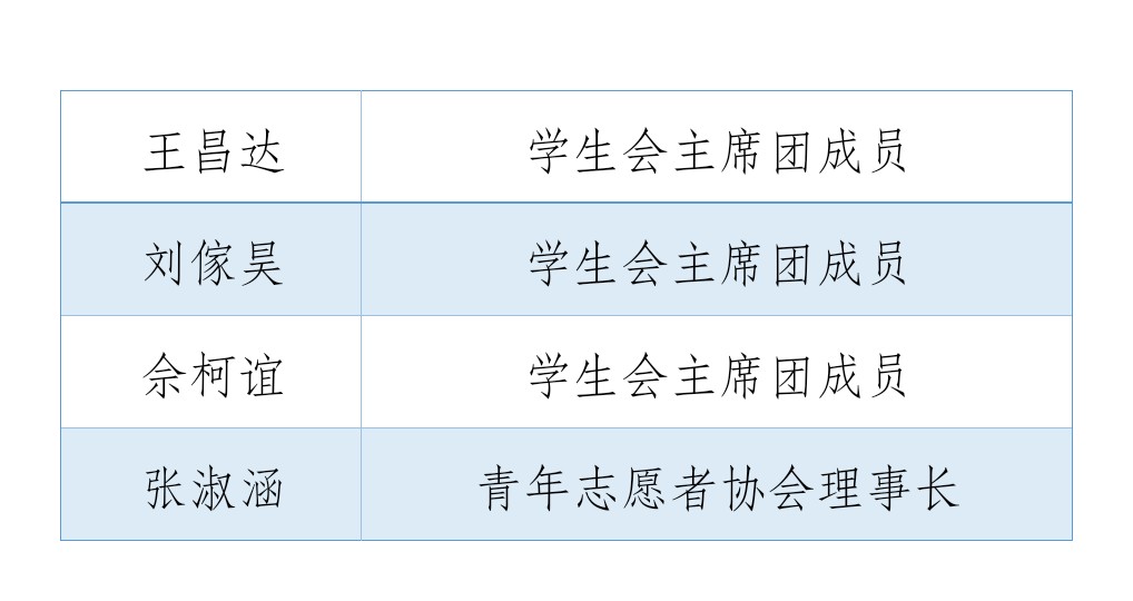 2025-2026学年学生会主席团成员和青年志愿者协会理事长名单