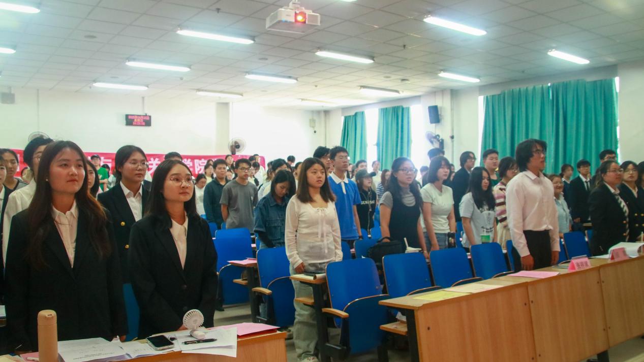 大会在庄严的国歌声中拉开帷幕。团委副书记李雪儿首先向大会作筹备工作报告,详细宣读会议议程、大会须知,并公布选举表决监票人、计票人名单。