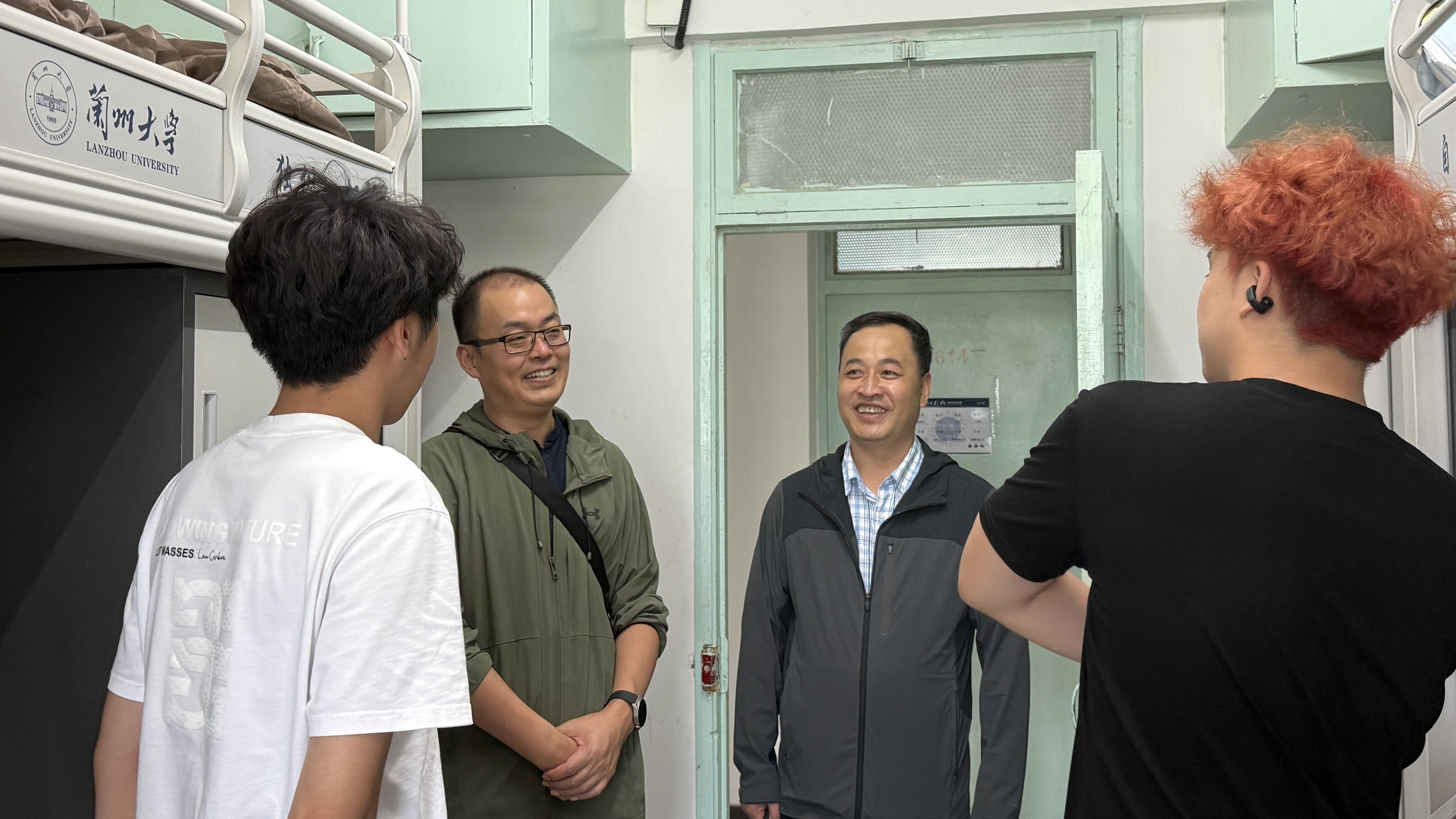 迎来一批怀揣梦想的2025级新生。为帮助新生尽快适应大学环境,感受学院大家庭的温暖,学院党委书记常虹、院长朱永彪、党委副书记张军儒、各班班主任与辅导员一行,深入榆中校区新生宿舍,亲切看望刚刚入校的本科及研究生新生。
