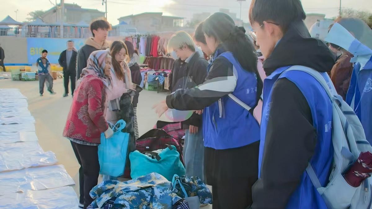 青年志愿者协会牵头,联合物理科学与技术学院、生态学院,于10月19日上午在夏官营集市举行一场充满温情与奉献精神的军训服义卖活动。