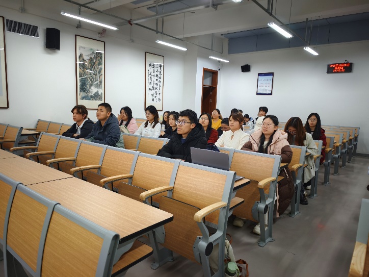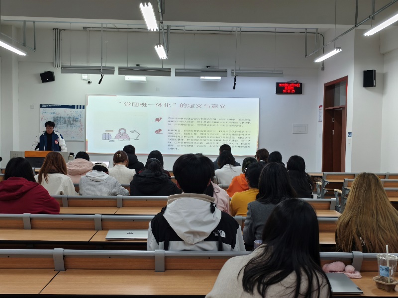 在讲解过程中,范宸豪结合学院特色与专业背景,引导同学们深入理解党团班一体化建设在凝聚青年共识、提升组织活力、服务学生成长方面的重要意义;团支书陈紫嫣则围绕团组织在联系青年、服务青年、引领青年方面的具体作用,分享了团组织在推动理论学习、志愿服务和社会实践等方面的积极探索。