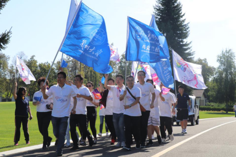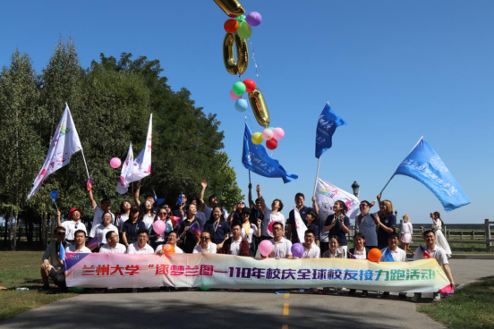 活动中,兰大人以积极的姿态,自信的步伐,所到之处旗帜飞扬,活力四射,庄园内的游客被这一份激情感染,纷纷向跑团投来鼓舞和赞许的手势。在跑团冲线后,大家共同喊出了“祝母校生日快乐”,用汗水与笑容记录下自己对母校的热爱,为母校送上自己最诚挚的祝福。