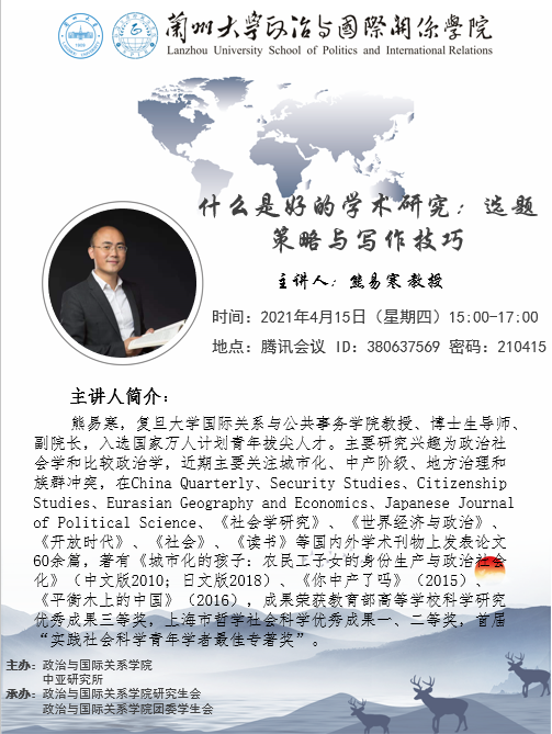 应h漫 、h漫 中亚研究所邀请,,复旦大学国际关系与公共事务学院教授、博士生导师、副院长熊易寒为我校师生做学术讲座。欢迎广大师生届时参加!