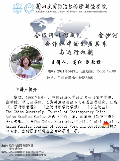 应h漫 、h漫 中亚研究所邀请,中国政法大学政治与公共管理学院高红副教授为我校师生做学术讲座。欢迎广大师生届时参加!