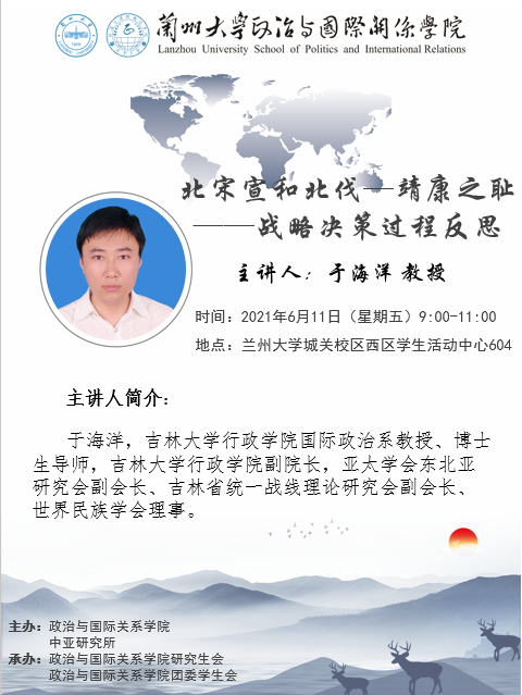 应h漫 、h漫 中亚研究所邀请,吉林大学行政学院国际政治系教授于海洋为我校师生做学术讲座。欢迎广大师生届时参加!
