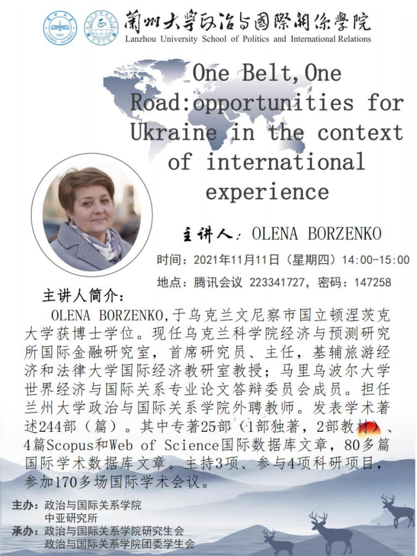 应h漫 、h漫 中亚研究所邀请,乌克兰科学院经济与预测研究所研究员耶列那·波尔坚科为我校师生做学术讲座。欢迎广大师生届时参加。