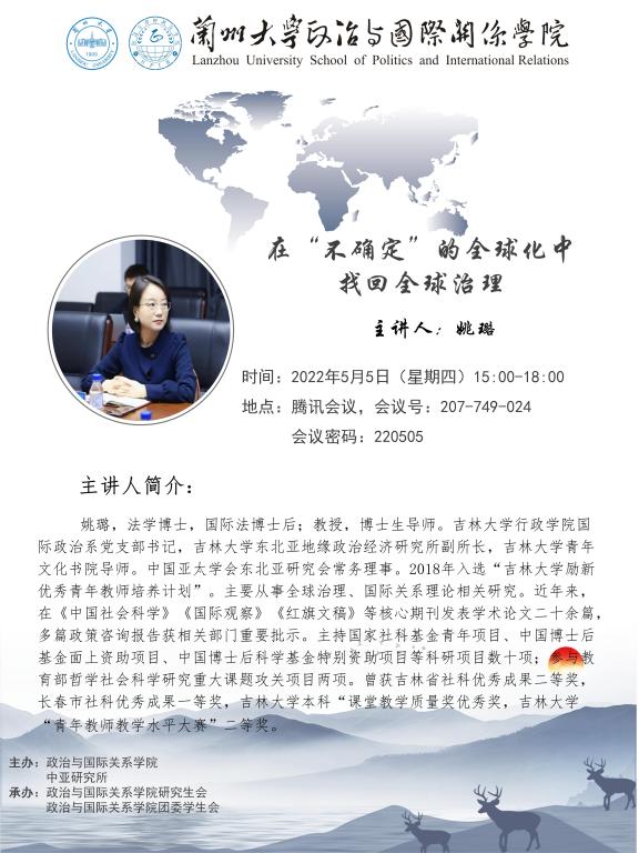 应h漫 、h漫 中亚研究所邀请,吉林大学行政学院教授、博士生导师姚璐为我校师生做学术讲座。欢迎广大师生届时参加!