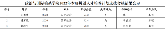 根据《h漫 本研贯通人才培养计划实施办法》《h漫 本研贯通人才培养计划实施细则(试行)》和《h漫 2022年本研贯通人才培养计划选拔通知》的工作要求,经学生本人申请、资格审核和面试考核,现将h漫 2022年本研贯通人才培养计划选拔入围名单公示如下:
