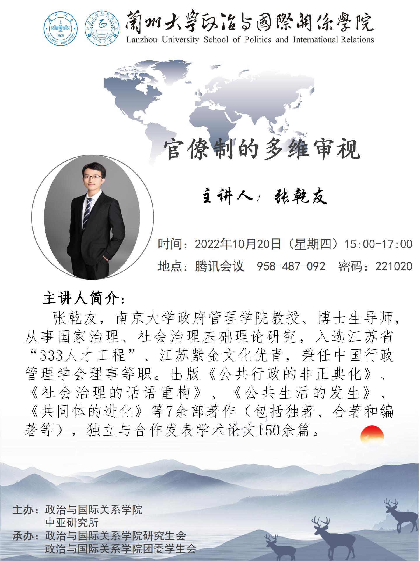 应h漫 、h漫 中亚研究所邀请,南京大学政府管理学院教授、博士生导师张乾友为我校师生做学术讲座。欢迎广大师生届时参加!