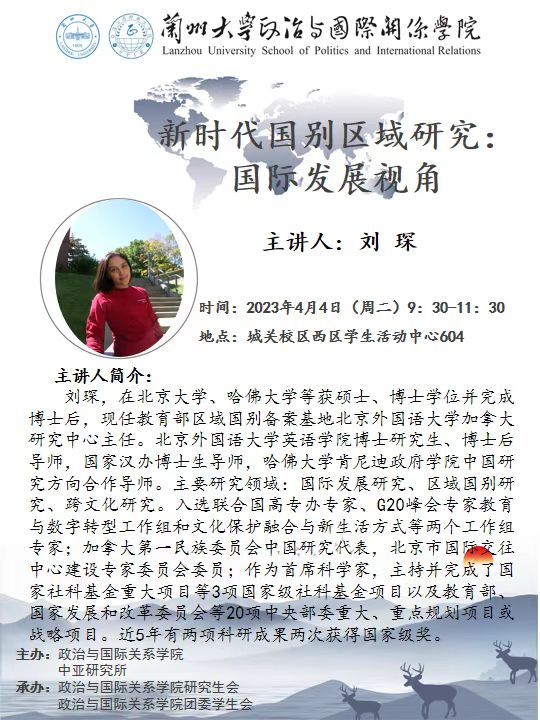 应h漫 、h漫 中亚研究所邀请,北京外国语大学英语学院博士研究生、博士后导师,国家汉办博士生导师,哈佛大学肯尼迪政府学院中国研究方向合作导师刘琛教授为我校师生做讲座。欢迎广大师生届时参加!