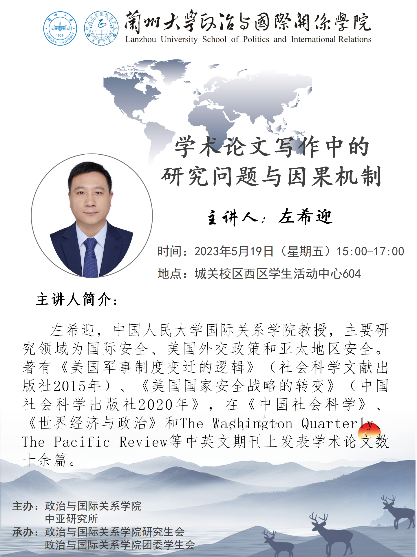 应h漫 、h漫 中亚研究所邀请,中国人民大学国际关系学院教授左希迎为我校师生做讲座。欢迎广大师生届时参加!