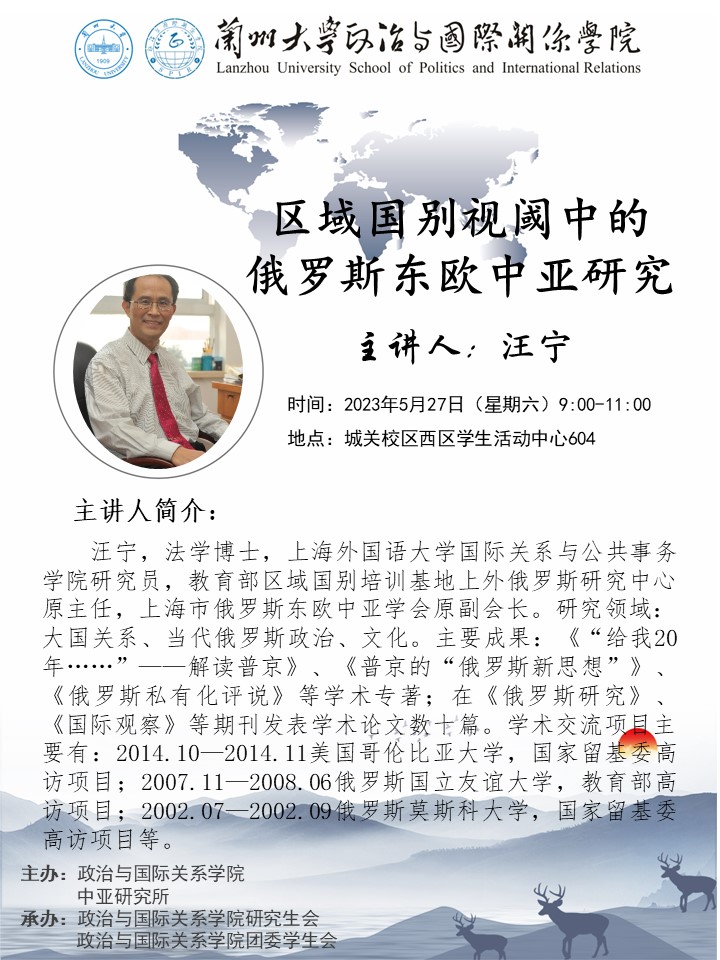 应h漫 、h漫 中亚研究所邀请,上海外国语大学国际关系与公共事务学院研究员汪宁为我校师生做讲座。欢迎广大师生届时参加!