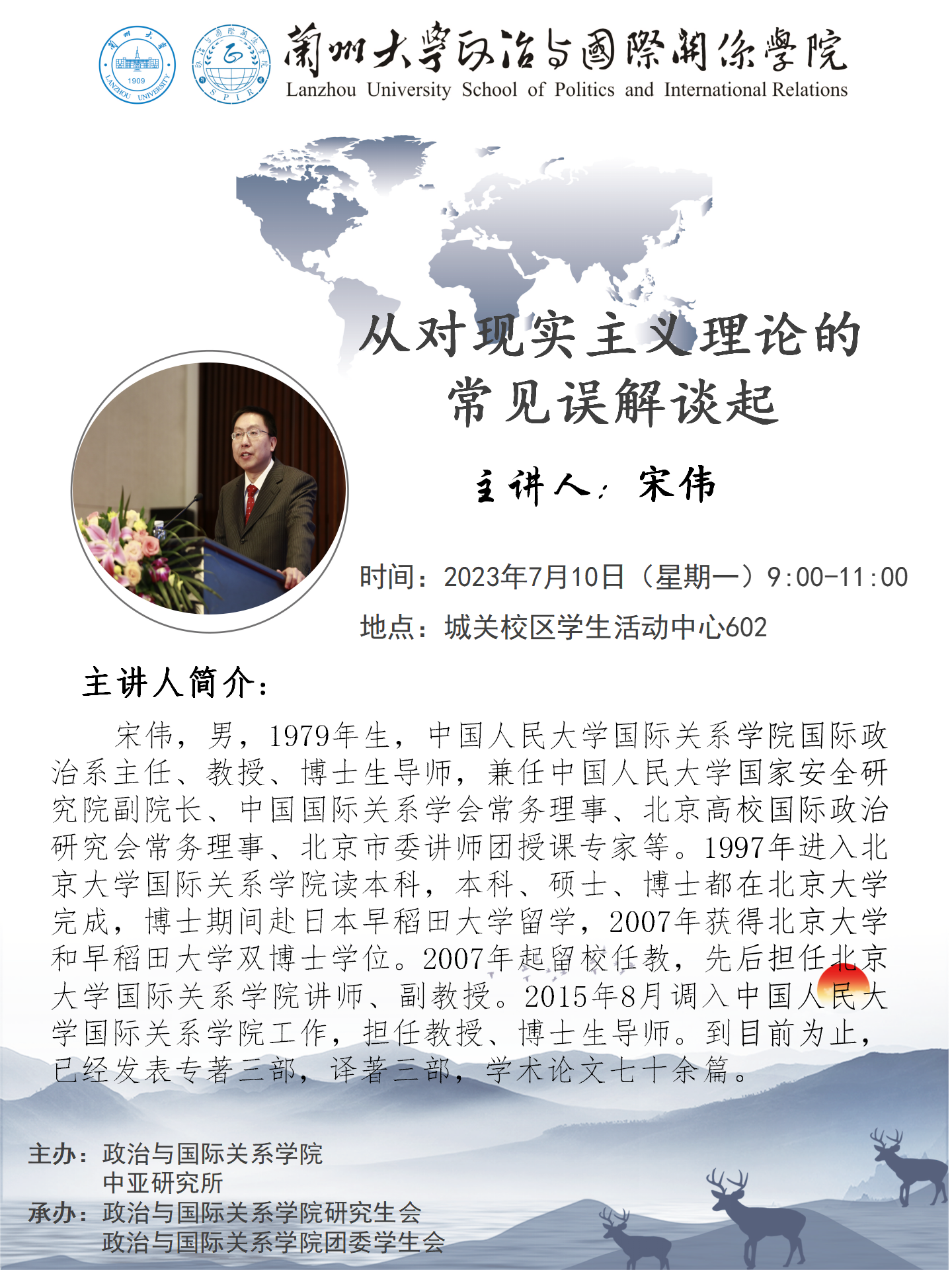 应h漫 、h漫 中亚研究所邀请,中国人民大学国际关系学院国际政治系主任、教授、博士生导师宋伟为h漫 教师做教学交流讲座。欢迎全体老师参加!