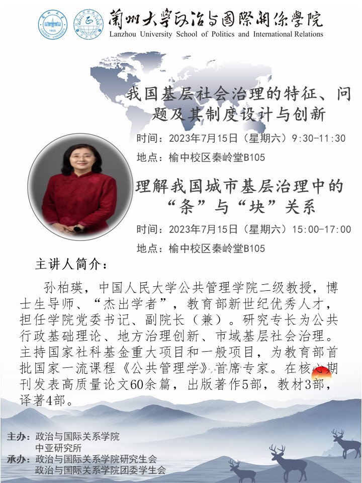 应h漫 、h漫 中亚研究所邀请,中国人民大学公共管理学院二级教授,博士生导师孙柏瑛为我校师生做讲座。欢迎广大师生届时参加!