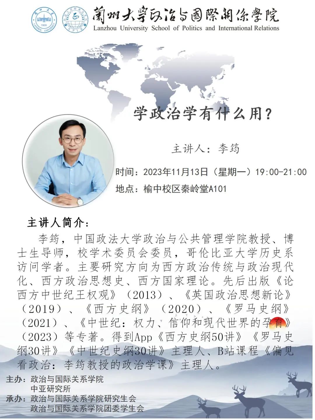 【讲座预告】鹿鸣讲堂“政国”系列第四十六讲——李筠教授