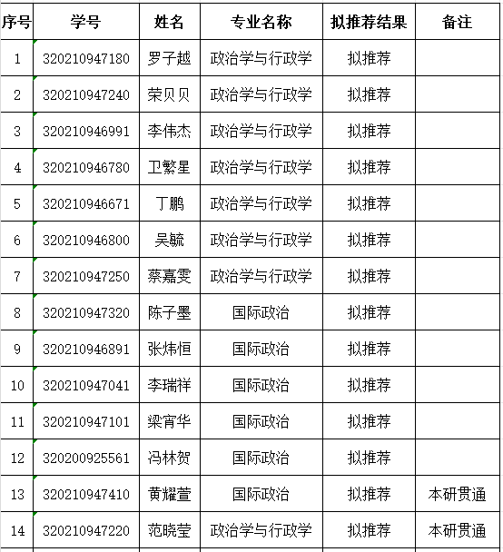 2025年推荐免试攻读研究生工作实施细则》,在学生本人自愿申请的基础上,学院推免生遴选工作小组本着公开、公平、公正的原则,严格按照推荐条件进行综合考察,以学业成绩(80%)和综合评价(20%)加权后组成总成绩,根据总成绩确定拟推荐名单。现将具体名单公示如下: