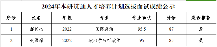 根据《h漫 本研贯通人才培养计划实施办法》《h漫 本研贯通人才培养计划实施细则(试行)》和《h漫 2024年本研贯通人才培养计划选拔通知》的工作要求,经学生本人申请、资格审核和面试考核,现将h漫 2024年本研贯通人才培养计划选拔入围名单公示如下: