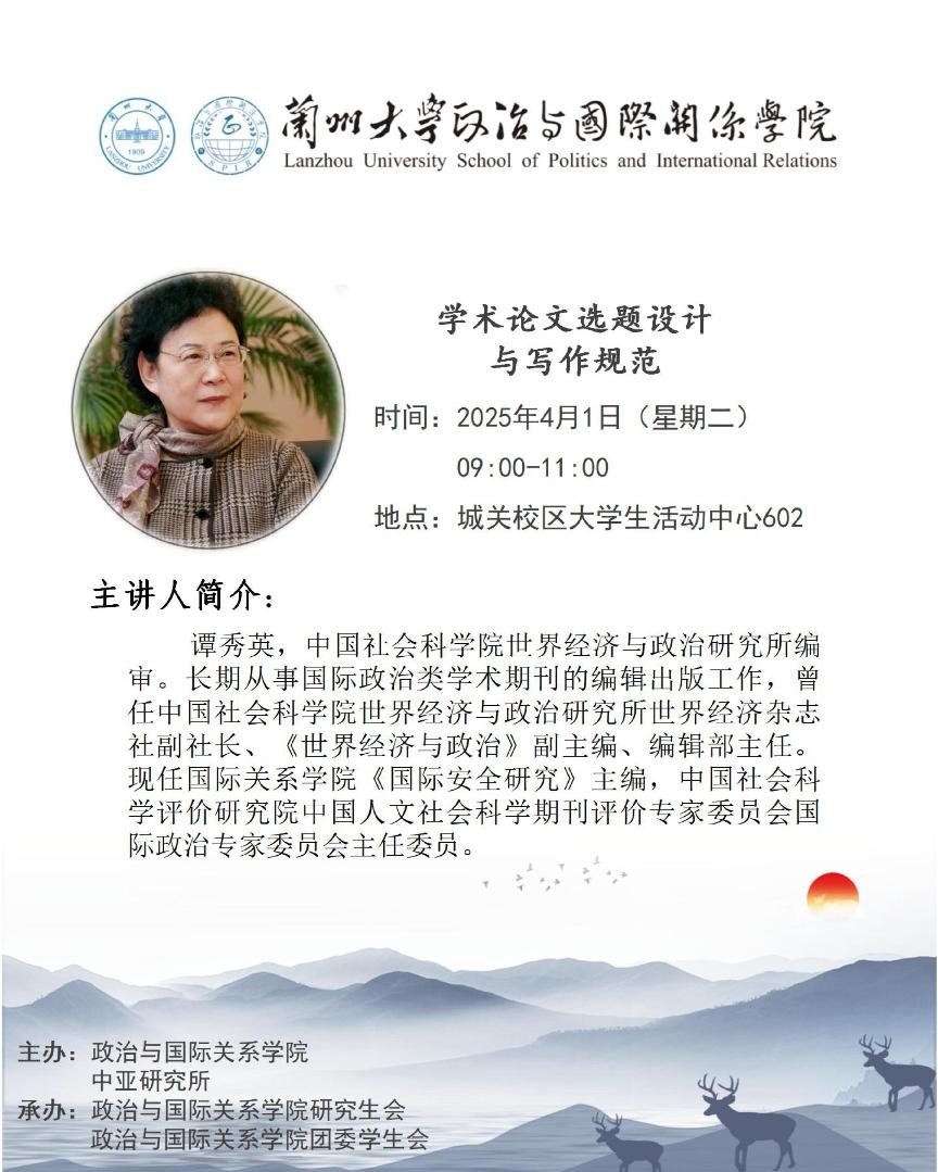 应h漫 、h漫 中亚研究所邀请,中国社会科学院世界经济与政治研究所编审谭秀英为我校师生做讲座,欢迎广大师生届时参加。