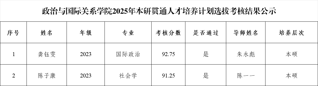 根据《h漫 本研贯通人才培养计划实施办法》《h漫 本研贯通人才培养计划实施细则》和《h漫 2025年本研贯通人才培养计划选拔通知》的工作要求,经学生本人申请、资格审核和面试考核,现将h漫 2025年本研贯通人才培养计划选拔入围名单公示如下: