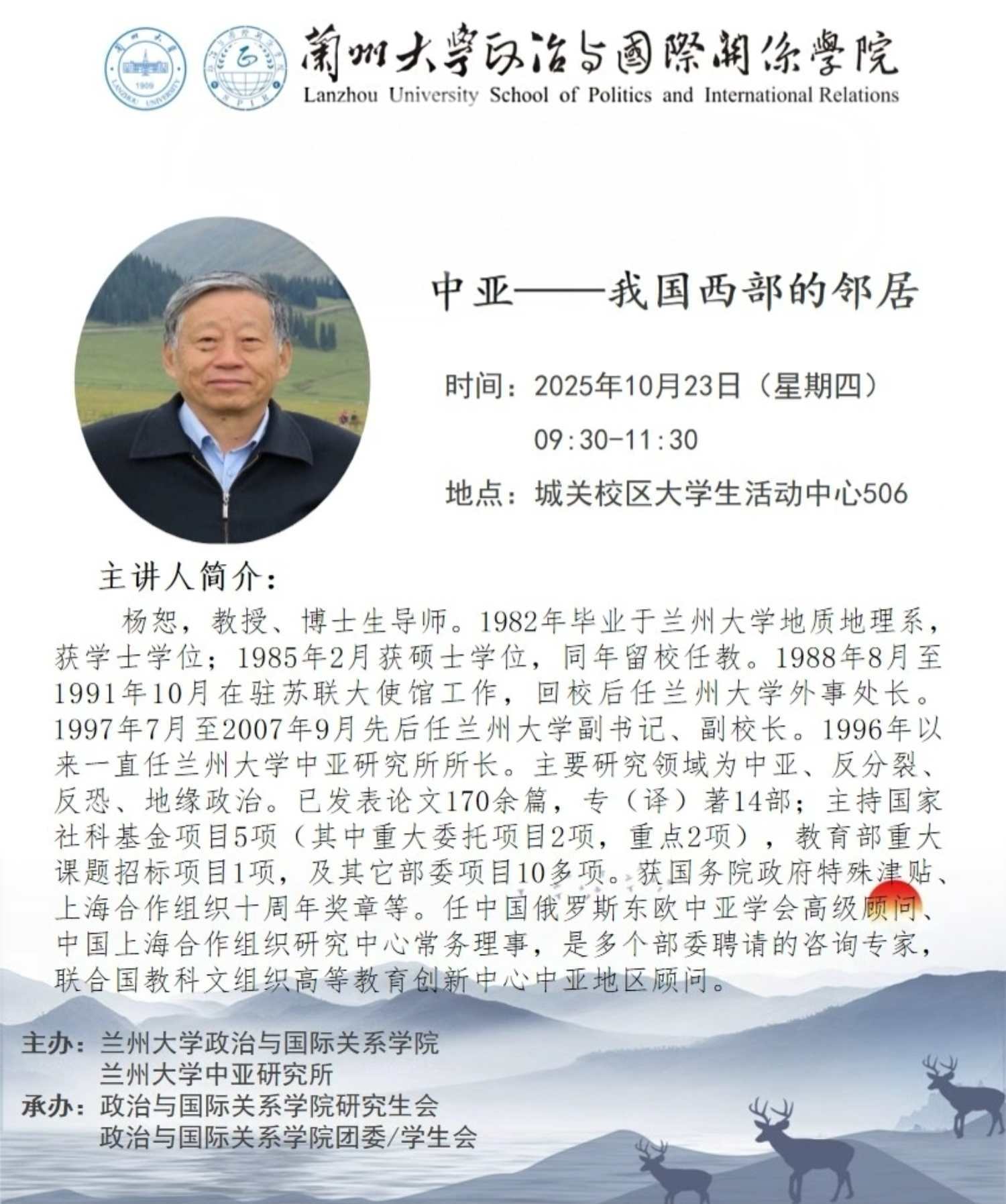 h漫 中亚研究所所长杨恕教授为我校教师做讲座,欢迎各位教师届时参加。